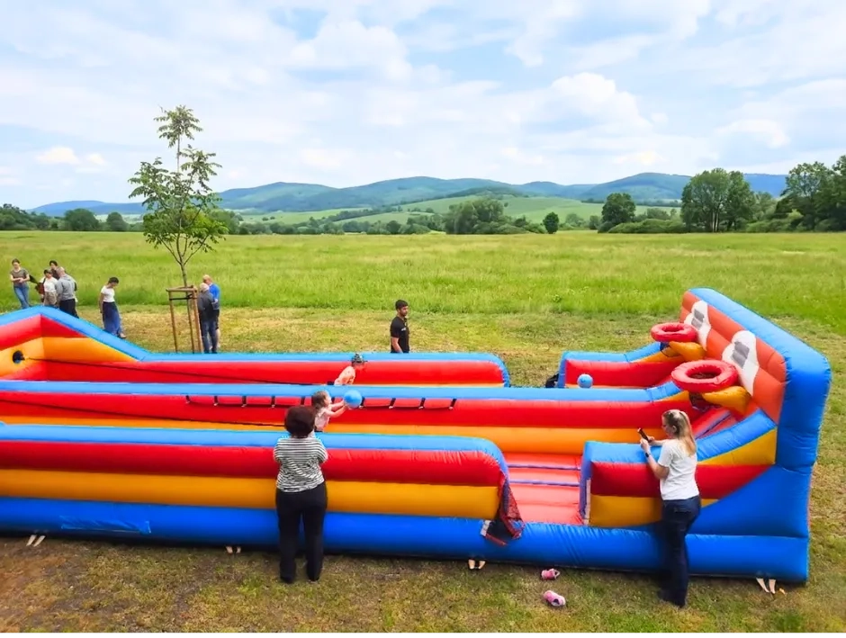 Bungee running v kombinaci s basketbalem je atraktivní, dynamická atrakce. Tento unikátní koncept 2v1 spojuje sílu, vytrvalost a přesnost v jednom napínavém souboji. Soutěžící jsou připoutáni k silnému bungee lanu a jejich úkol je rozdělen do dvou fází: 1. Souboj s gumou: Překonat odpor bungee lana a doběhnout co nejdále na vzdálenost 10 metrů. Každý krok vpřed vyžaduje maximální úsilí, zatímco vás guma neustále táhne zpět. 2. Střelba na koš: V momentě největšího tahu se soutěžící musí zkoncentrovat a trefit basketbalový koš. Právě odpor gumy dělá z obyčejného hodu na koš disciplínu pro ty nejlepší.