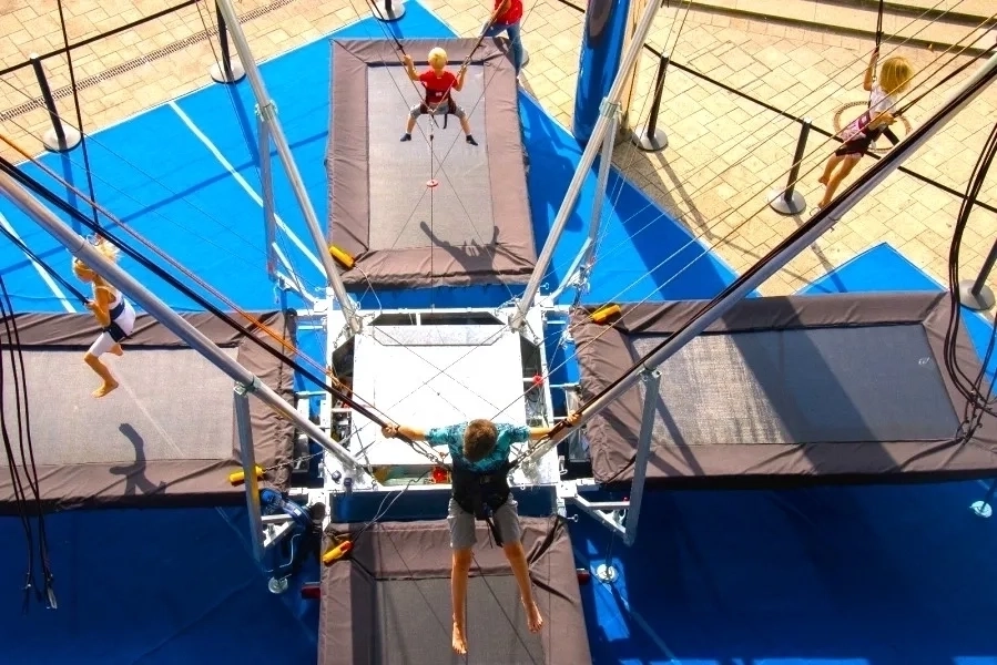 Díky profesionálnímu systému pružných lan a úvazků si návštěvníci mohou bezpečně vyzkoušet vysoké skoky, a to bez nutnosti předchozích zkušeností a s pocitem naprosté beztíže.