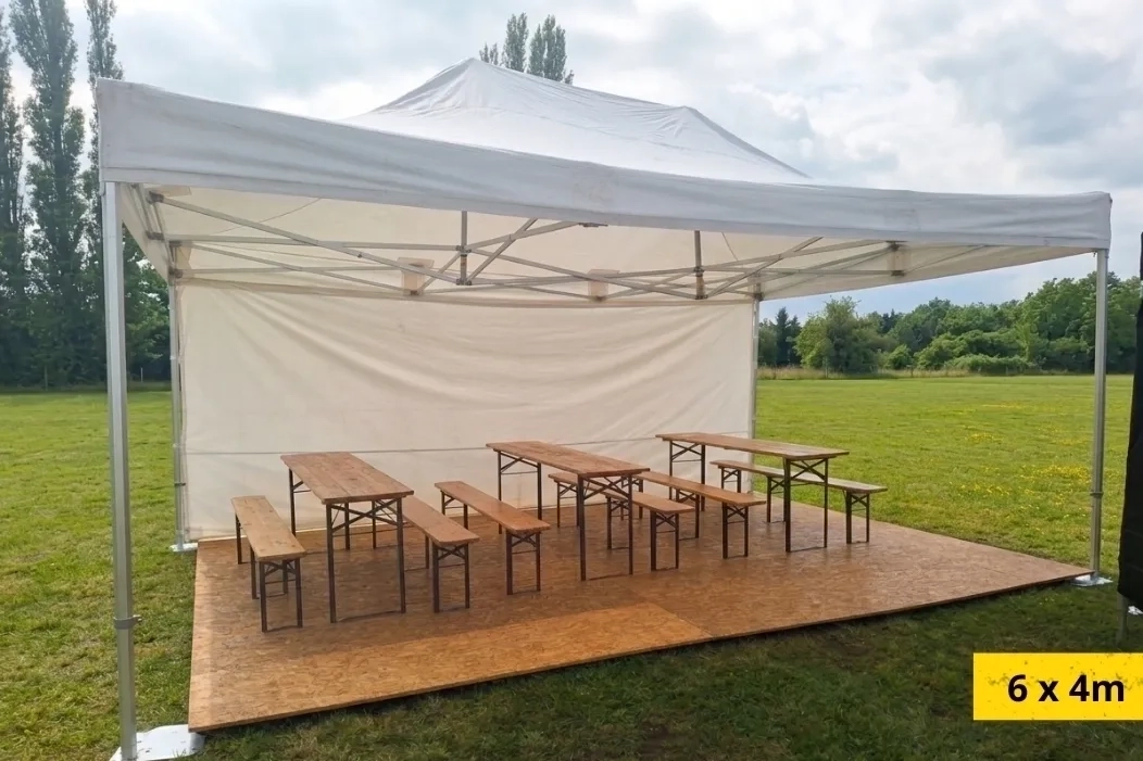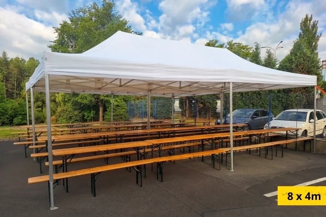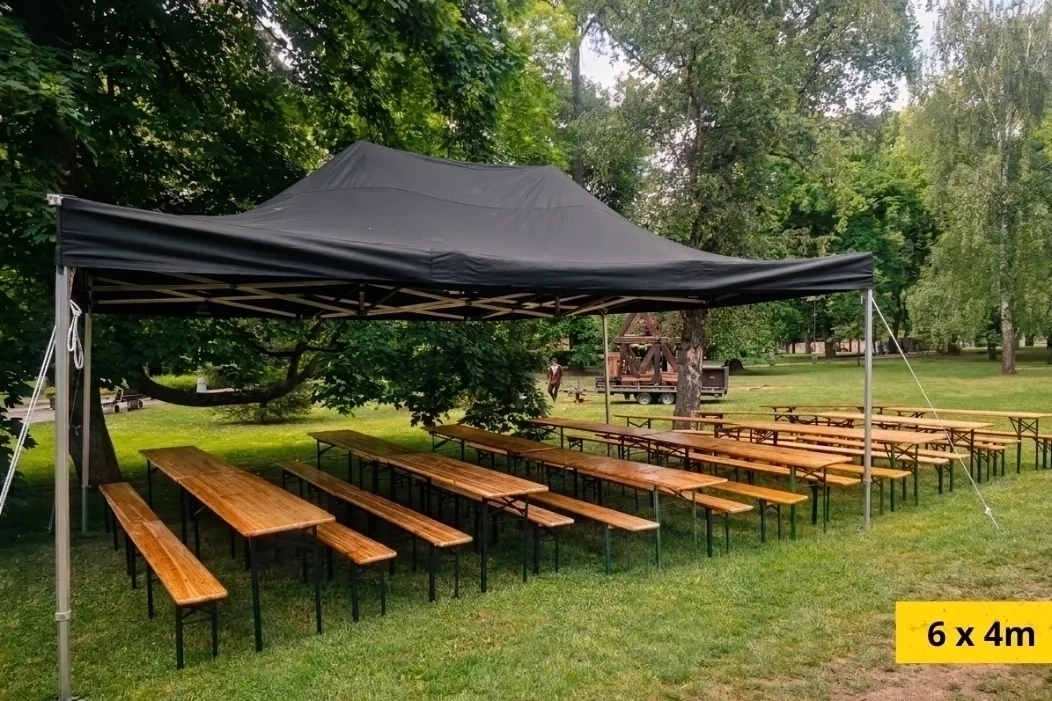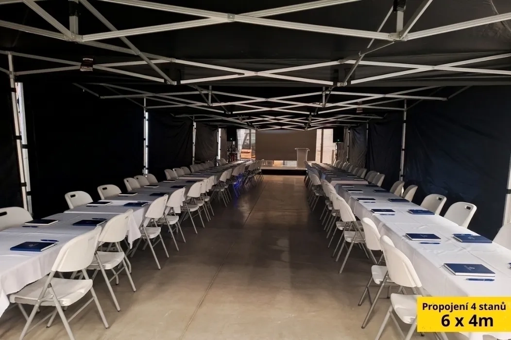 Nabízíme profesionální pronájem party stanů a velkokapacitních stanů pro malé zahradní party i velké eventy pro stovky lidí. Nůžkové party stany představují rychlé a efektivní řešení - jejich největší předností je blesková a snadná instalace. Díky jejich variabilitě je můžeme libovolně kombinovat a propojovat okapy, takže vytvoříme krytý prostor přesně podle vašich představ. Ačkoliv nepůsobí tak robustně a kompaktně jako velké stany, svou práci odvedou na jedničku.