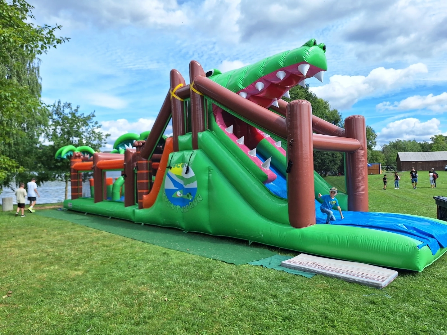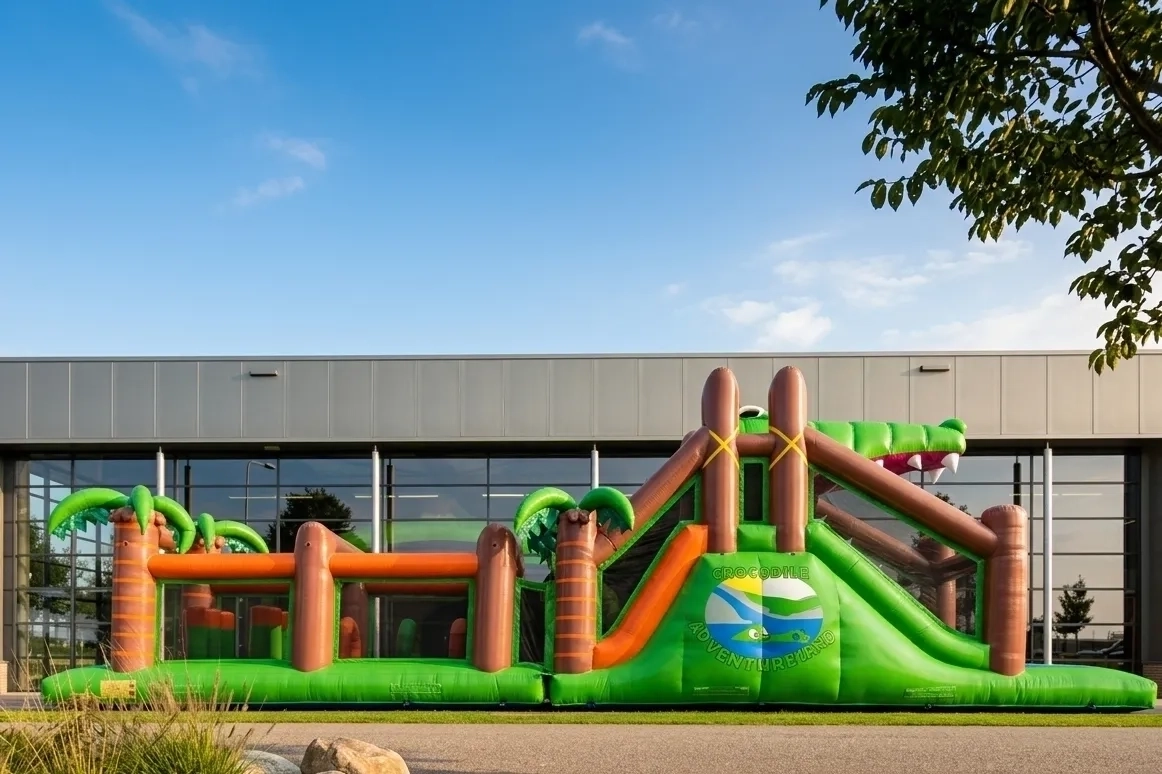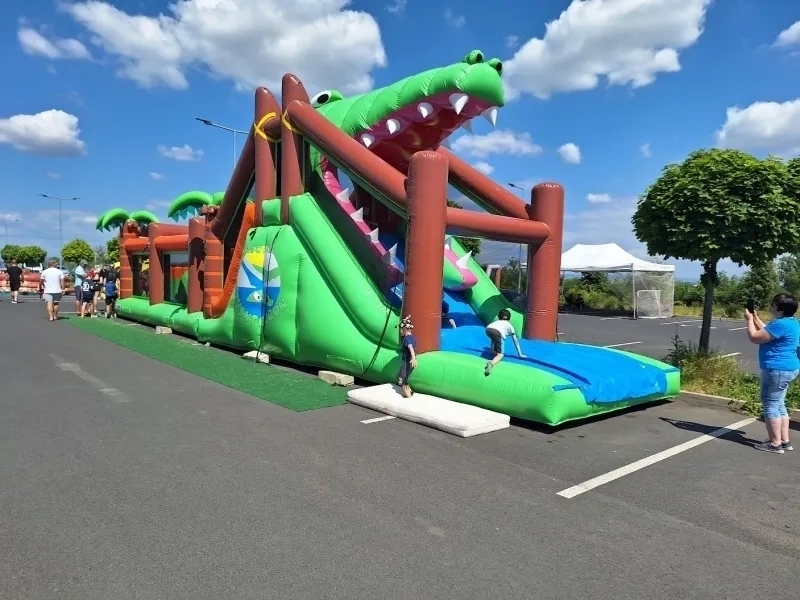 Naše nafukovací překážková dráha Krokodýl je dominantní atrakcí, která díky svému detailnímu designu s obří tlamou okamžitě upoutá pozornost na každé dětské akci. Tato interaktivní dráha nabízí dětem napínavé dobrodružství plné prolézaček, měkkých bariér a skrytých nástrah, které musí překonat na cestě skrz útroby krokodýla. Díky své délce a různorodosti prvků je pronájem nafukovacího krokodýla ideální pro pořádání rychlostních závodů, které u dětí rozvíjejí mrštnost a fyzickou zdatnost.