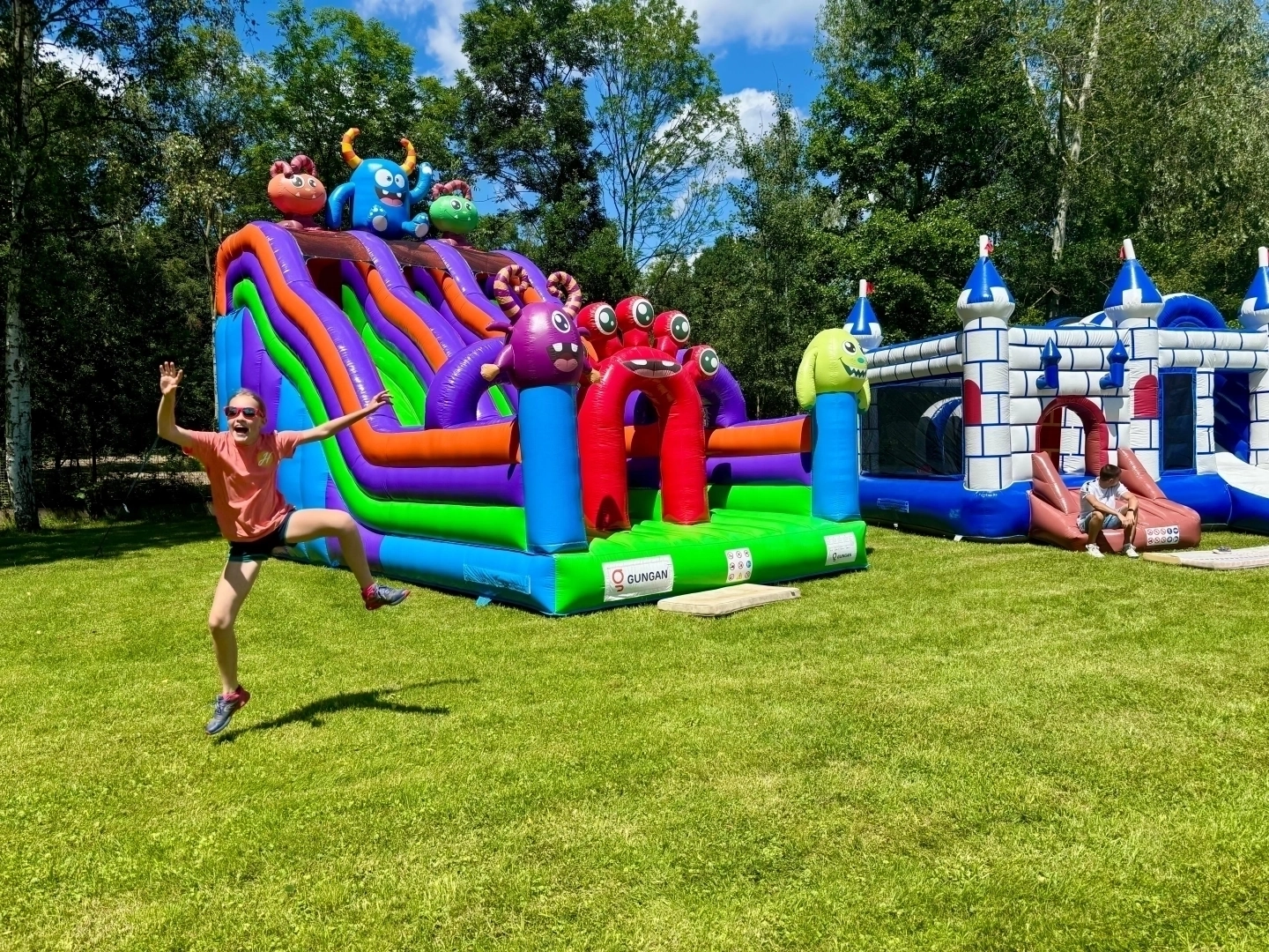 Tento barevný hrad plný veselých monster nabízí vysokou dvojskluzavku, kterou děti milují. Výrazné barvy a 3D figurky příšerek nadchnou kluky i holky na první pohled, a opravdu dlouhý sjezd na dvou skluzavkách je nadchne.