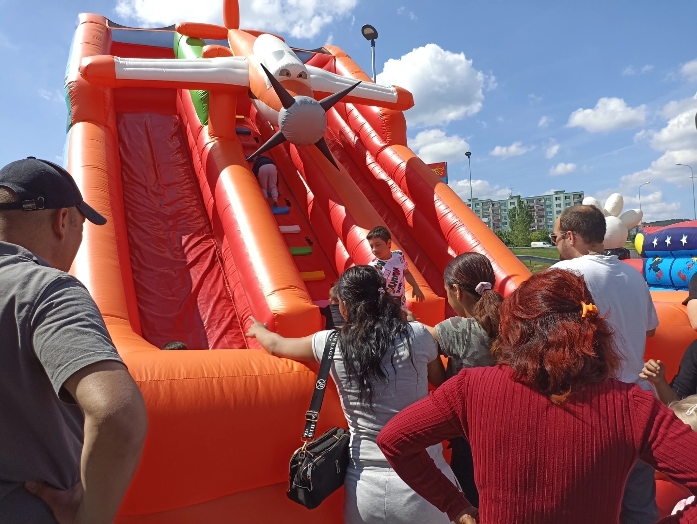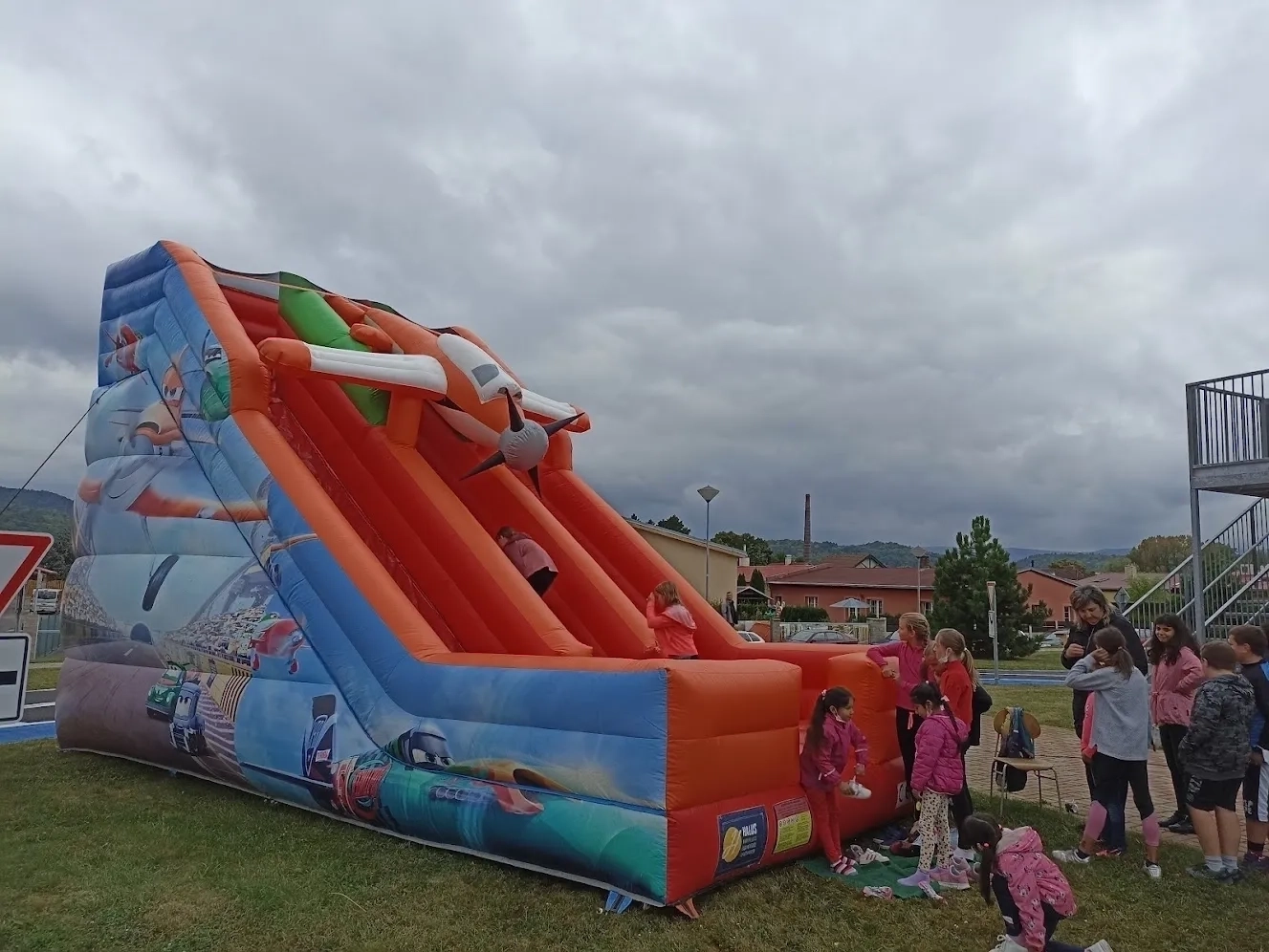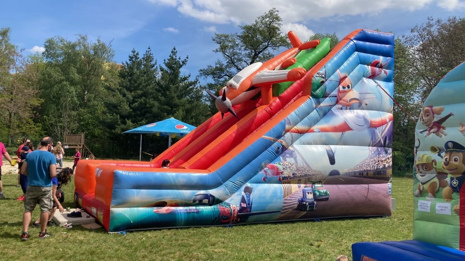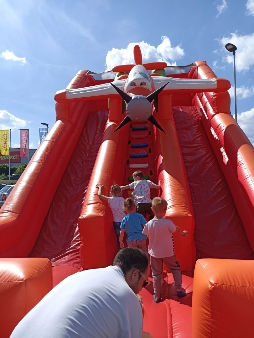 Prohlédněte si galerii zábavné atrakce Letadlo – tato obří dvojskluzavka s motivem letadla „Prášek“ z oblíbené pohádky bude dominantou každé oslavy. Díky své výšce a pořádně dlouhé skluzavce nabízí tato atrakce pořádnou dávku adrenalinu, kterou milují starší děti. 3D model letadla s vrtulí dělá z této atrakce perfektní orientační bod každého dětského dne