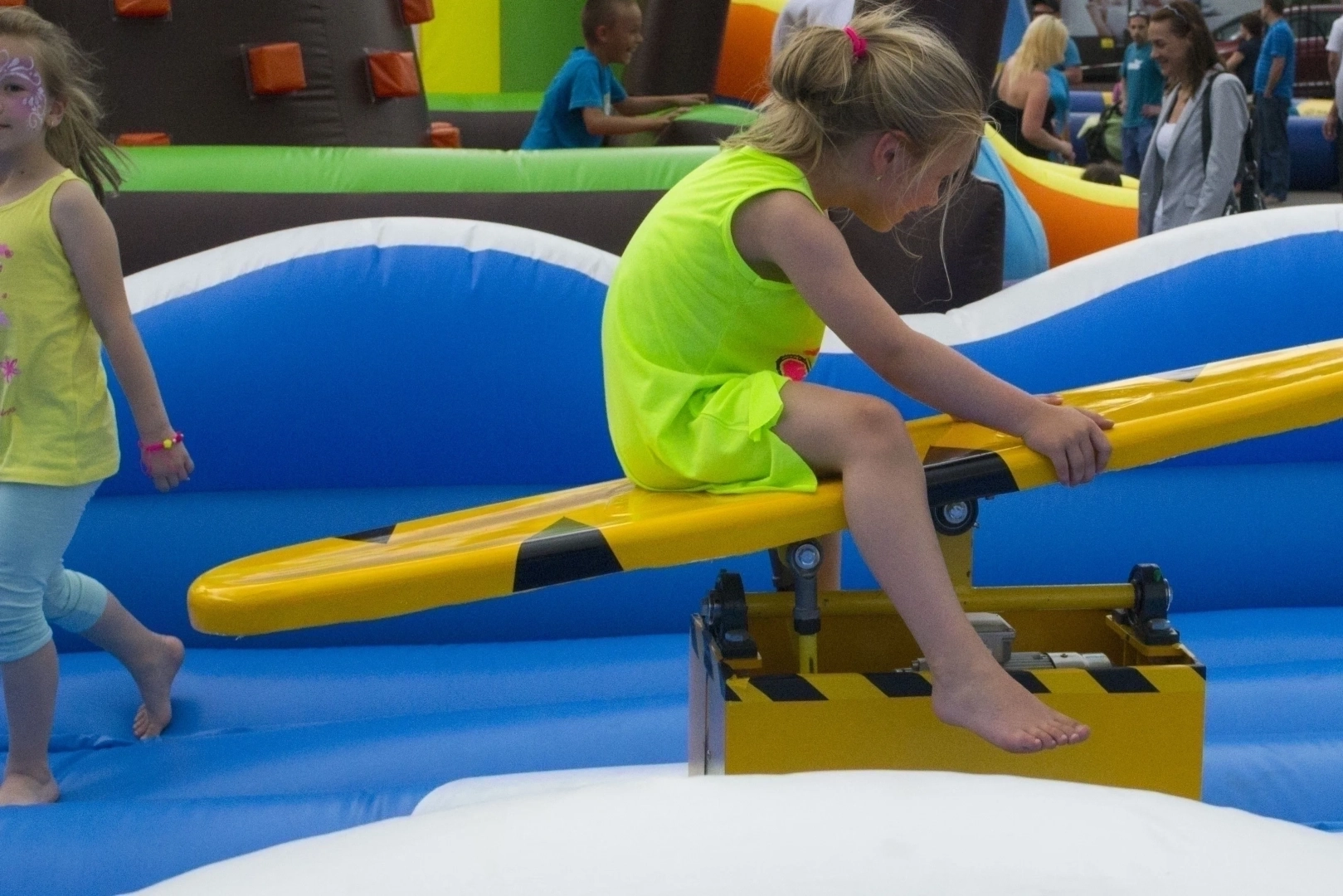 Naše mobilní atrakce nabízí bezpečnou zábavu pro děti i dospělé, kteří si chtějí vyzkoušet stabilitu na divokém prkně.